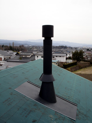 この家は二階の天窓から煙突トップが見えて、煙の様子等がチェックできます。