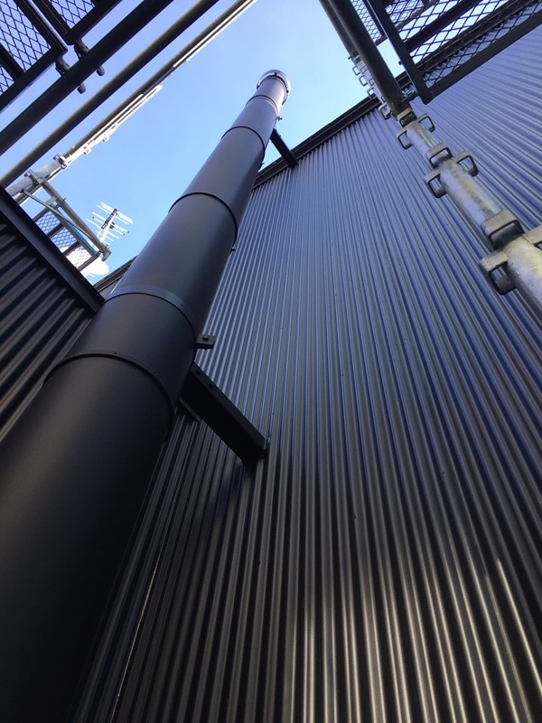 非常に純度が高く、液体の燃料を燃焼させるので、煙やススがほとんど出ない為、煙突などは不要です。