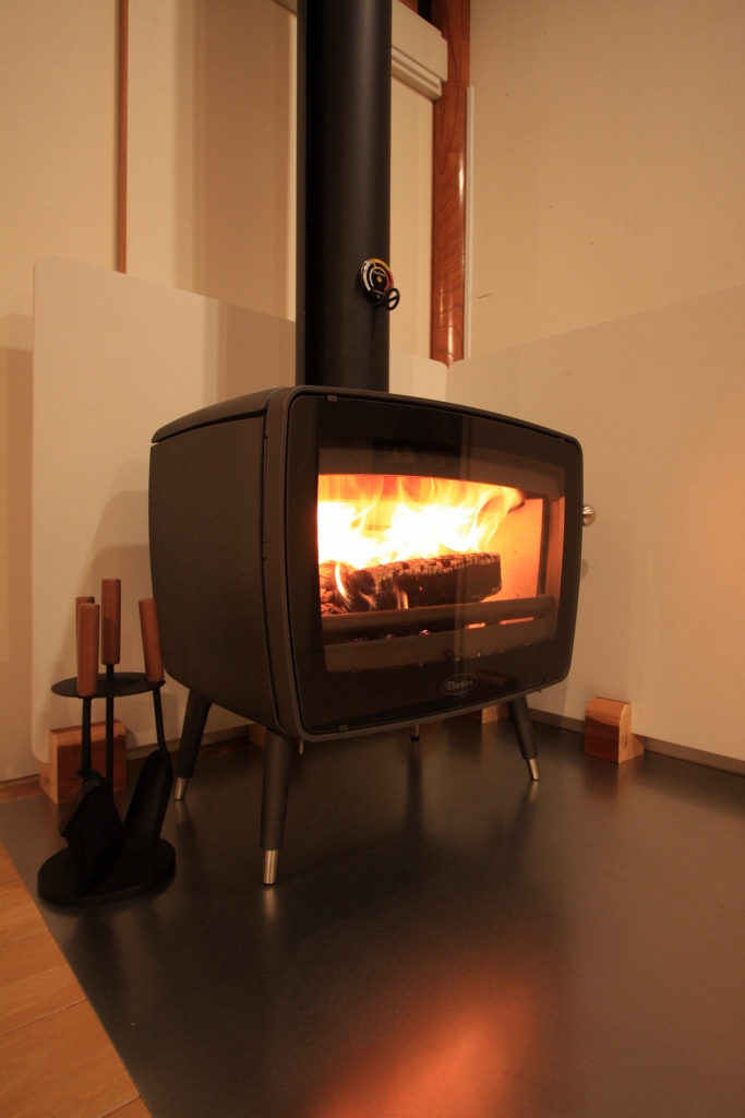 作業中の室内をしっかり暖めてくれる薪ストーブは